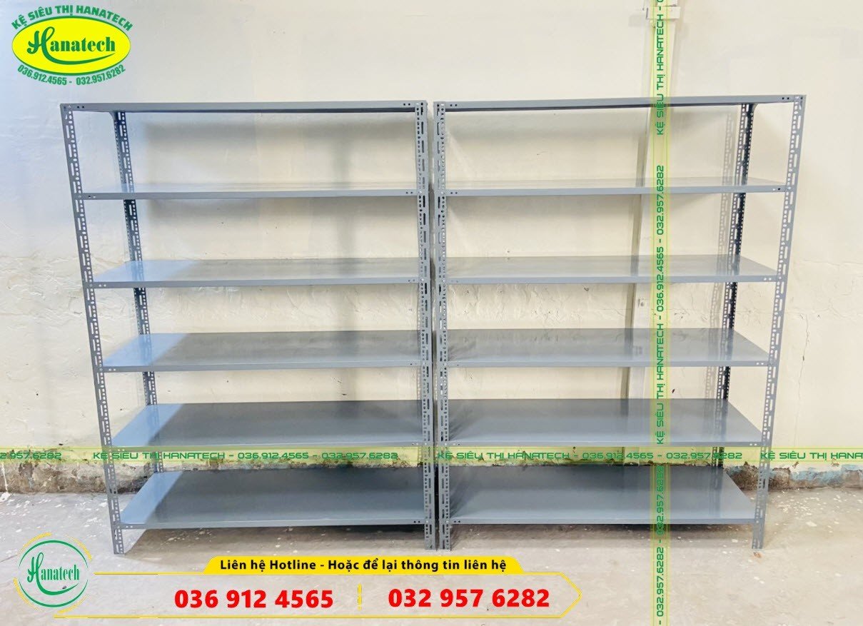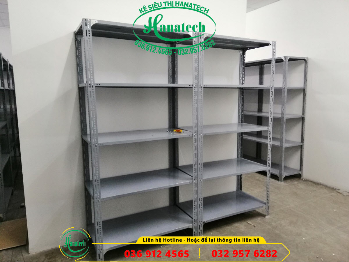 Mẫu kệ sắt V lỗ này được sơn tĩnh điện 2 lớp, tải trọng hàng hóa tùy theo loại từ 50-200kg. Sản phẩm này được Hanatech trực tiếp sản xuất và lắp đặt trọn gói cho khách hàng tại Sài Gòn. Mời quý khách tham khảo một vài mẫu kệ sắt v lỗ đa năng mà Hanatech lắp đặt nhé: