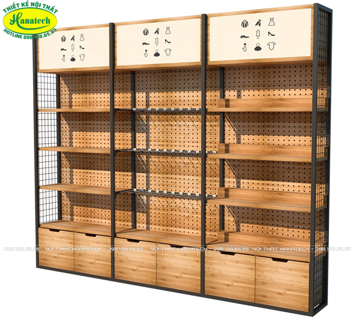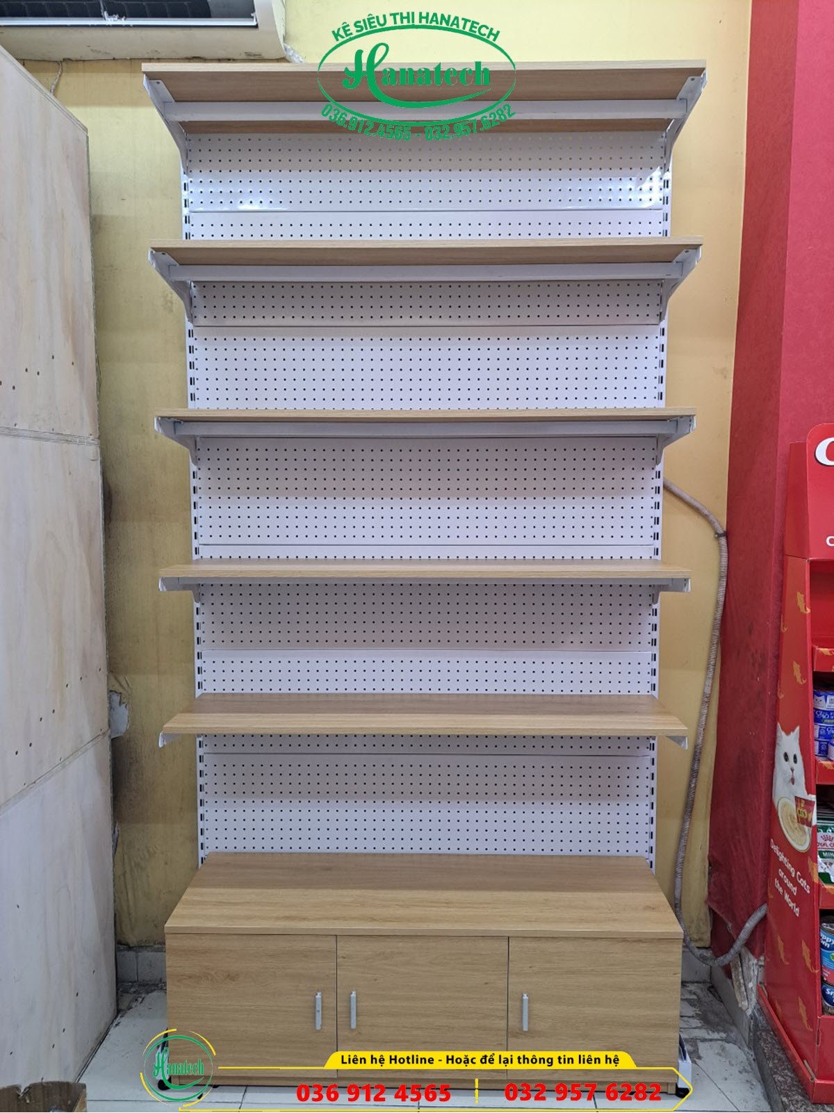 Mẫu kệ siêu thị lưng tôn đục lỗ trưng bày sản phẩm ở TPHCM
