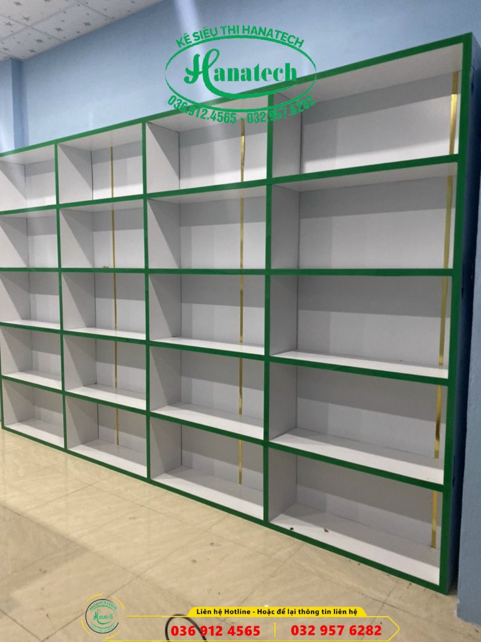 Cũng như kệ siêu thị, kệ siêu thị mâm gỗ cũng bao gồm các loại kệ lưng lưới, tôn đục lỗ và tôn liền. Mâm gỗ được Hanatech xử lý nên không bao giờ bị mối, mọt, ẩm, mốc. Mời quý khách tham khảo hình ảnh kệ siêu thị mâm gỗ mà Hanatech lắp đặt tại TPHCM nhé.