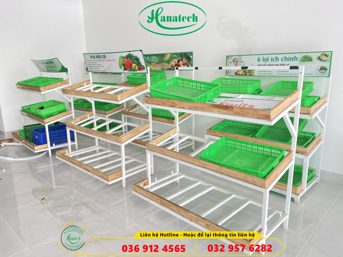 Mẫu kệ này được Hanatech trực tiếp thiết kế và sản xuất theo yêu cầu từ chất liệu đến hình dáng, kích thước. Mời quý khách tham khảo một vài mẫu kệ rau củ quả mà Hanatech đã lắp đặt tại TPHCM nhé :