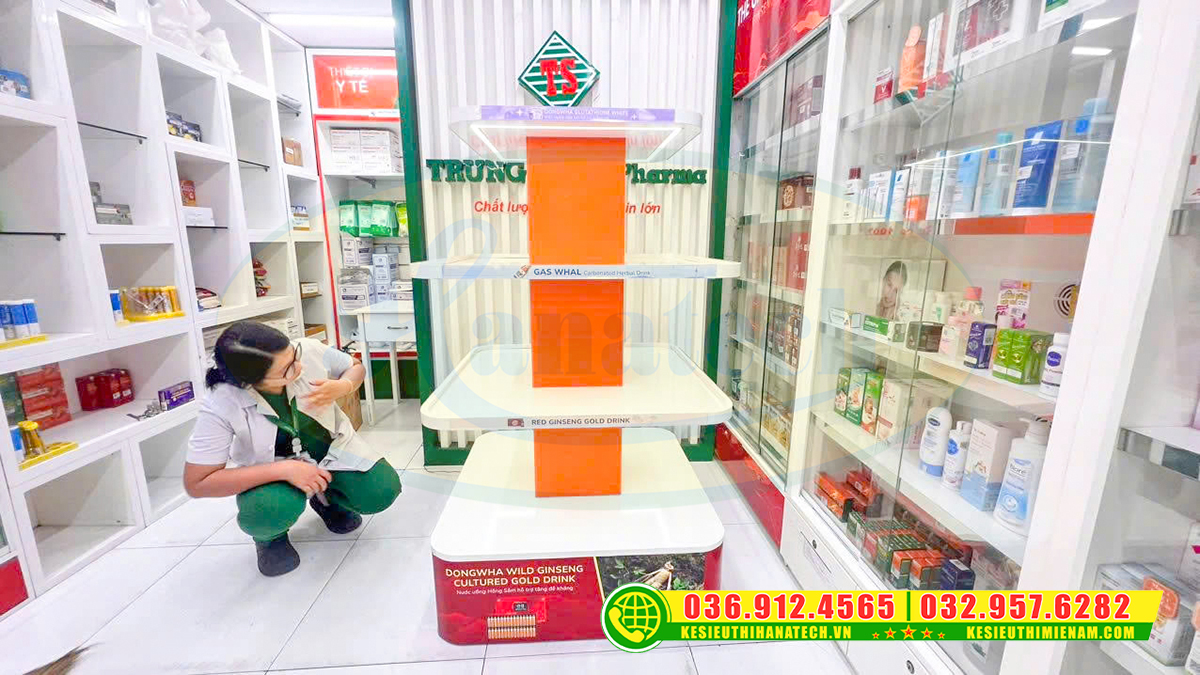 Không phải cửa hàng nào cũng giống nhau, vì vậy giải pháp trưng bày cũng cần mang dấu ấn riêng. Tại Quảng Ngãi, Hanatech giới thiệu kệ khung sắt mâm gỗ thiết kế theo yêu cầu, đáp ứng đúng mong muốn về kích thước, màu sắc và phong cách của từng chủ shop.